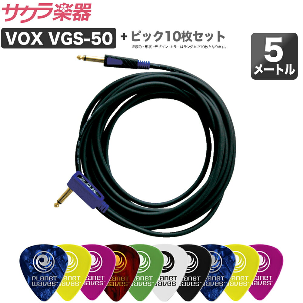 VOX S/Lジャック ケーブル VGS-50 & PLANETWAVES ピック10枚セット 【 5m シールド ピック ギター用ピック ダダリオ プラネットウェイヴス ピックセット】 【 VGS50 PWPICK10 】【9月1日はエントリー等でポイント5倍】【ゆうパケット対応】*