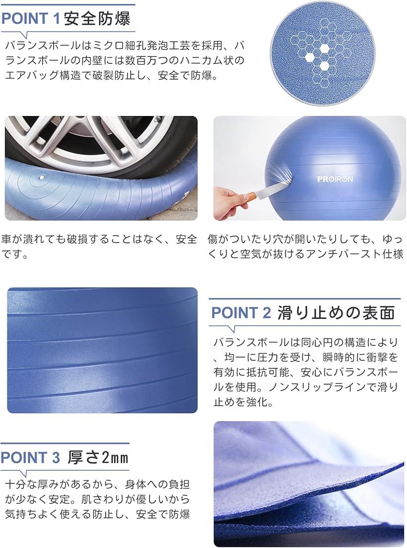 【SS期間 全店20%OFFクーポン配布中!】PROIRON バランスボール ばらんすぼーる55cm 65cm 75cm (6色) 厚い ジムボール フィットネスボール アンチバースト 耐荷重300kg ハンドポンプ付